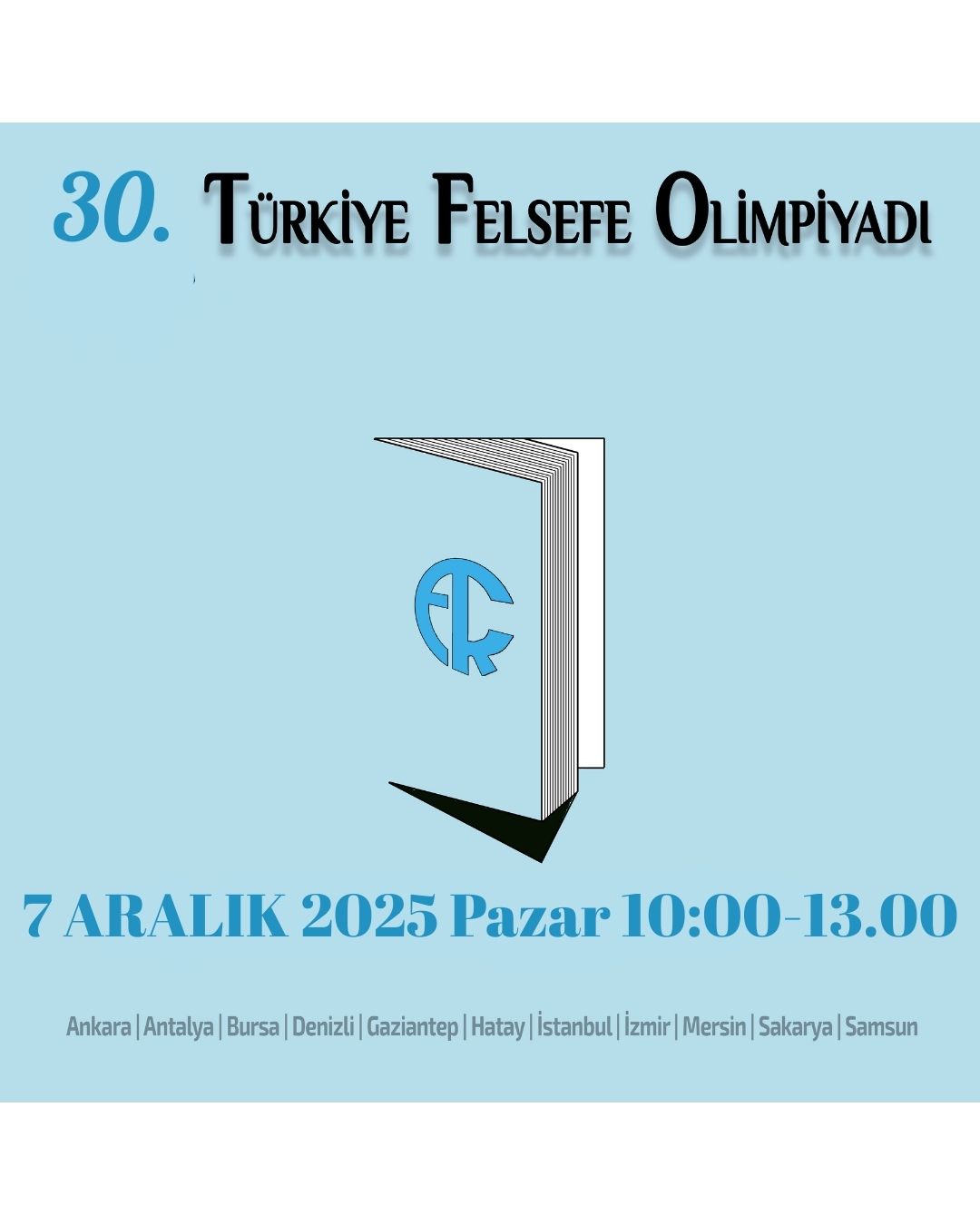 30. Türkiye Felsefe Olimpiyadı 7 Aralık 2025 Pazar günü, saat 10:00-13:00 arasında yapılacaktır.