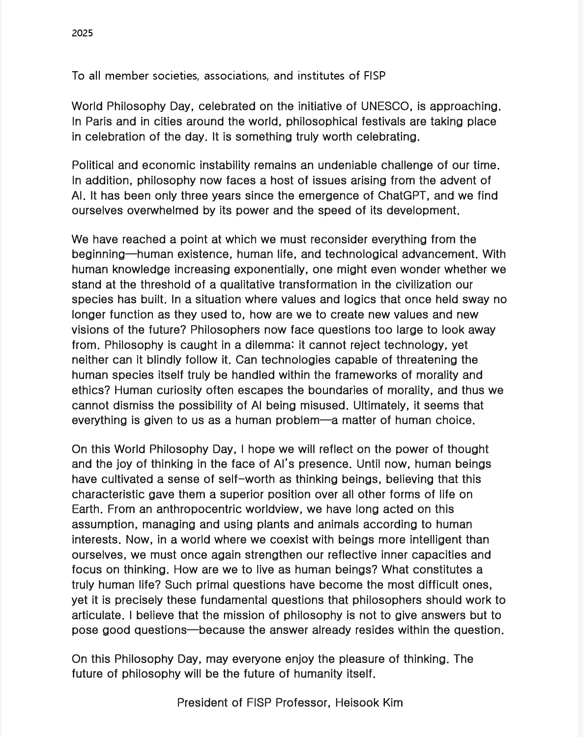FISP Başkanının Dünya Felsefe Günü Mesajı